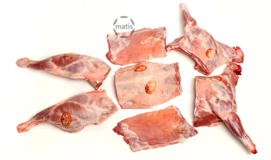 Hálfur skrokkur (Eitt læri, einn frampartur, eitt slag og hálfur hryggur), sagaður í grillsneiðar. Slög heil.